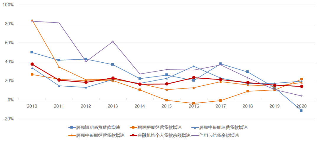 金融機(jī)構(gòu)居民部門(mén)信貸增速(2013年-2020年)