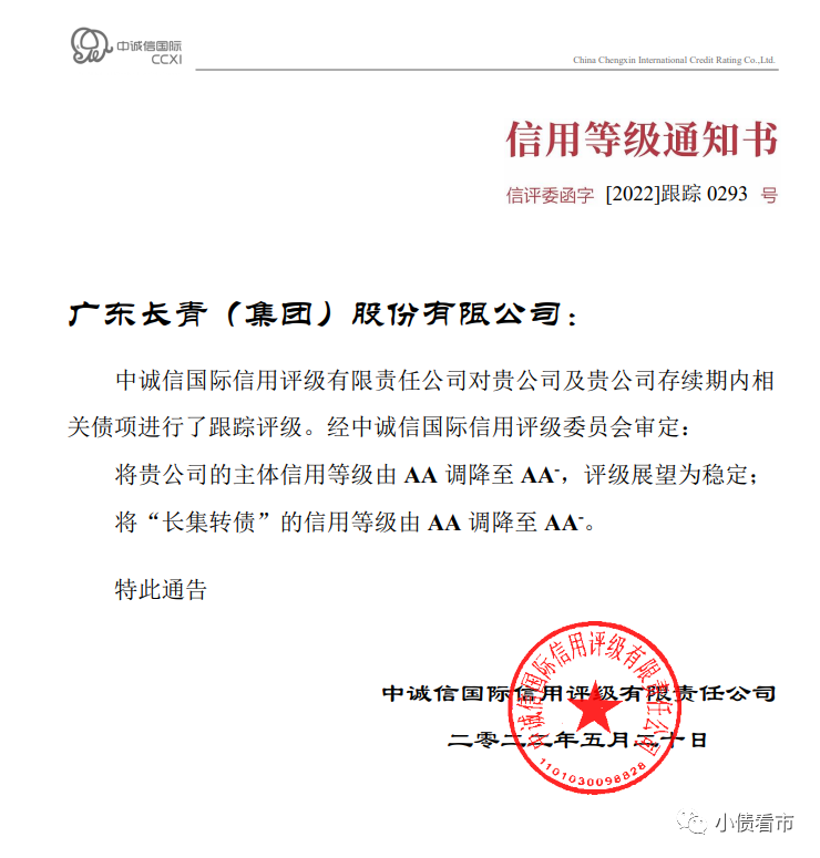5月24日,中誠信國際公告稱,將長青集團(002616.SZ)主體信用等級由AA調(diào)降至AA-,評級展望為穩(wěn)定,并將“長集轉(zhuǎn)債”的債項信用等級由AA調(diào)降至AA-。