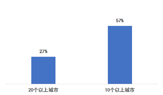 從布局城市來看,TOP30集中式長租公寓企業中有57%的企業已進駐10個以上城市,27%的企業進駐城市超過20個。