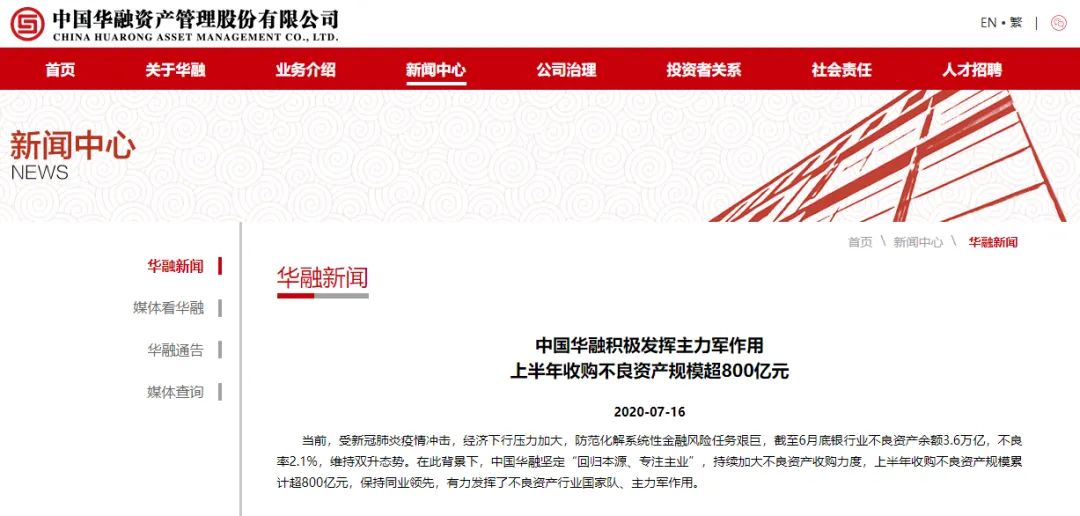 據業內介紹,去年6月以來不少銀行加快不良出包速度,來自四大AMC之一的中國華融的信息顯示,上半年公司收購不良資產規模累計超800億元,僅6月收購不良資產規模超500億元。