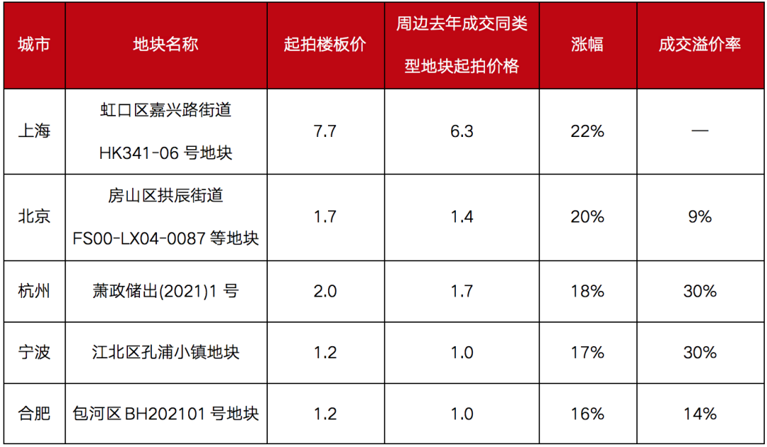表:典型調整起拍價熱點地塊(萬元/平方米,%)