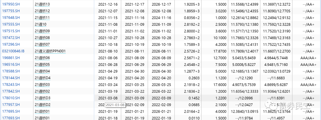 遵義道橋最近一次債券發(fā)行是在2022年1月6日發(fā)行,1月7日起息的“22遵橋01”,發(fā)行規(guī)模為1.69億元。值得關(guān)注的是,遵義道橋擬于2022年1月17日發(fā)行“22遵橋02”,這將是評級展望調(diào)整為負(fù)面之后的第一次債券發(fā)行。