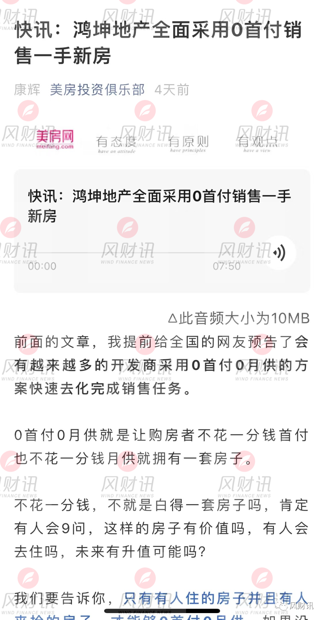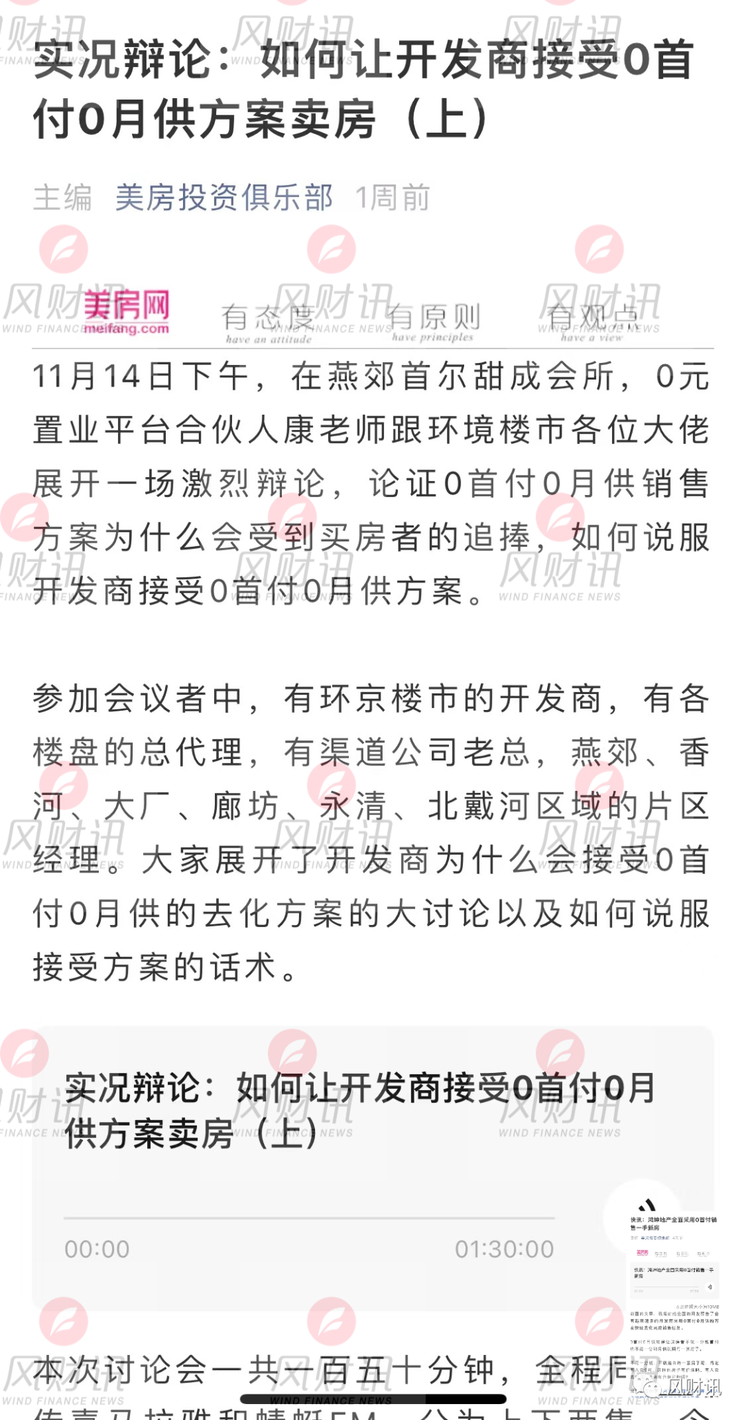顯然,這也是一場“成功”的秘密會議。僅過了8天之后,11月22日,美房網便欣然官宣:鴻坤地產將全面采用0首付銷售一手新房。