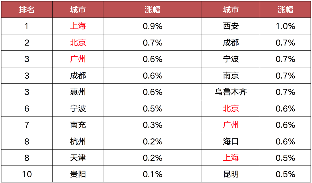 比如四大一線城市普漲,新建商品住宅銷售價格環比上漲0.5%,其中北京、上海、廣州和深圳分別上漲0.6%、0.5%、0.6%和0.4%,二手住宅價格漲幅比上月擴大0.4個百分點。一線城市已經進入到了二手房成交為主流的房地產市場,上海、北京、廣州包攬二手房漲幅TOP3。
