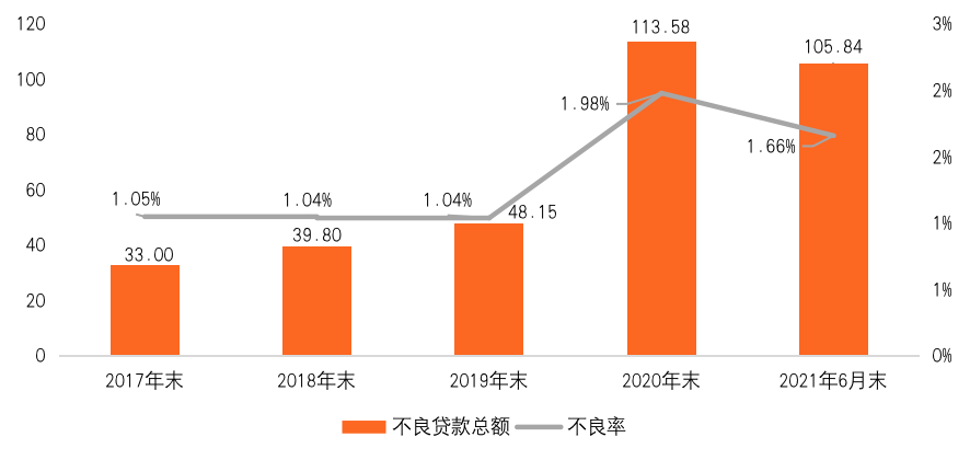 一、利潤與資產(chǎn)質(zhì)量好轉(zhuǎn),個人房貸占比仍超標(biāo)(一)上半年歸母凈利潤增長18%,不良率降至1.66%2021上半年,徽商銀行的歸母凈利潤繼續(xù)保持增長態(tài)勢。從2017上半年的37.80億元增長至2021上半年的61.95億元,5年間增幅超60%。從同比增速來看,除了受疫情影響的2020上半年增速僅為6.71%,其余各期的歸母凈利潤增速均在10%以上,其中2021上半年增速高達(dá)18%,盈利能力在快速恢復(fù)。圖 2:徽商銀行2017上半年-2021上半年歸母凈利潤情況(單位:億元,%)資料來源:徽商銀行2017-2021半年報(bào),零壹智庫整理與盈利能力一同恢復(fù)的還有資產(chǎn)質(zhì)量。由于承接了原包商銀行北京、深圳、成都、寧波四家分行的不良貸款,再疊加全球新冠疫情和安徽省特大洪澇災(zāi)害的影響,徽商銀行2020年貸款不良率陡升至1.98%。2021上半年,徽商銀行重點(diǎn)投身于風(fēng)險(xiǎn)防控,加快清收處置,不良率降至1.66%,較2020年末下降了0.32個百分點(diǎn)。然而,相較于2019年及以往年度的表現(xiàn),徽商銀行2021上半年的不良率仍處于較高水平,這也有銀行自身的原因。從貸款結(jié)構(gòu)來看,占貸款總額近六成的公司貸款不良率較高,2021上半年達(dá)到2.29%,而同期不良率僅為0.82%的零售貸款占比卻不足四成。此外,7月末,徽商銀行還因申請對紫光集團(tuán)破產(chǎn)重整而備受關(guān)注,高達(dá)70億元的債務(wù)違約也對該行的資產(chǎn)質(zhì)量造成較大沖擊。圖 3:徽商銀行2017-2021年不良貸款情況(單位:億元,%)資料來源:徽商銀行財(cái)報(bào),零壹智庫整理(二)零售存貸款規(guī)模擴(kuò)大,個人住房貸款占比超標(biāo)徽商銀行堅(jiān)持“服務(wù)地方經(jīng)濟(jì)、服務(wù)中小企業(yè)、服務(wù)廣大民眾”的市場定位,在零售業(yè)務(wù)上持續(xù)發(fā)力。零售存款及零售貸款余額持續(xù)穩(wěn)步增長,2021年上半年分別增長了451.93億元和120.43億元,增幅分別達(dá)19.19%和5.47%。