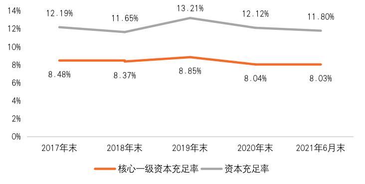2021下半年,徽商銀行供應(yīng)鏈金融業(yè)務(wù)繼續(xù)創(chuàng)新發(fā)展。9月18日,徽商銀行與供應(yīng)鏈票據(jù)市場頭部企業(yè)簡單匯聯(lián)合推出全國首例“供應(yīng)鏈票據(jù)+擔(dān)保”融資模式,在供應(yīng)鏈票據(jù)融資環(huán)節(jié)中引入蕪湖民強(qiáng)擔(dān)保公司,通過第三方擔(dān)保滿足銀行授信審批要求。在該模式下,商票貼現(xiàn)速度慢、擔(dān)保措施難落實(shí)等問題得到解決,同時,銀行能夠以低于市場平均價(jià)格30bp-50bp的貼現(xiàn)利率為中小企業(yè)提供票據(jù)融資,有效提升了融資便利性,降低了企業(yè)融資成本。值得關(guān)注的是,2021年7月,徽商銀行申報(bào)的“基于區(qū)塊鏈技術(shù)的綠色信貸服務(wù)”項(xiàng)目入選安徽省金融科技創(chuàng)新監(jiān)管工具第一批創(chuàng)新應(yīng)用。《金融科技創(chuàng)新應(yīng)用聲明書》顯示,該項(xiàng)目將綜合運(yùn)用區(qū)塊鏈、大數(shù)據(jù)、人工智能等技術(shù),構(gòu)建應(yīng)收賬款融資服務(wù)平臺,通過應(yīng)收賬款簽發(fā)、流轉(zhuǎn)、拆分、兌付等服務(wù),盤活企業(yè)資產(chǎn),提升新能源產(chǎn)業(yè)鏈上企業(yè)的資金流動性,助力綠色經(jīng)濟(jì)發(fā)展。該項(xiàng)目于9月27日正式運(yùn)營,預(yù)計(jì)服務(wù)中小微企業(yè)500家。三、內(nèi)控風(fēng)險(xiǎn)暴露:資本充足率下滑,業(yè)務(wù)違規(guī)多次被罰8月上旬,銀保監(jiān)會發(fā)布的銀行業(yè)保險(xiǎn)業(yè)主要監(jiān)管指標(biāo)數(shù)據(jù)顯示,2021年二季度末,商業(yè)銀行核心一級資本充足率為10.50%,資本充足率為14.48%。相比之下,徽商銀行2021年6月末的核心一級資本充足率8.03%,資本充足率11.80%,分別較2020年末下降0.32個百分點(diǎn)和0.01個百分點(diǎn)。這一表現(xiàn)不僅遠(yuǎn)低于行業(yè)平均水平,從近5年總體變化趨勢來看,還在逐漸逼近監(jiān)管的紅線。圖 6:徽商銀行2017-2021年資本充足率情況資料來源:徽商銀行財(cái)報(bào),零壹智庫整理徽商銀行資本金緊張的背后,一方面是源于不良資產(chǎn)大幅增加,加大了撥備計(jì)提和處置力度;另一方面則是資本金補(bǔ)充面臨難題。作為補(bǔ)充資本金的一大重要渠道,徽商銀行多年前就在計(jì)劃A股IPO,但近年來發(fā)生的股東爭端和股權(quán)糾紛等問題,卻成為其回歸A股的一大阻礙。徽商銀行早在2015年就提交了A股上市申請,經(jīng)歷三年排隊(duì),卻在2018年2月因股東和管理層發(fā)生爭議而撤銷;2018年末,在進(jìn)行了高管變動和董事會換屆之后,徽商銀行重啟了A股上市計(jì)劃,但股東之間的紛爭仍未消解。徽商銀行大股東中靜新華資產(chǎn)管理有限公司(簡稱“中靜新華”)、中靜四海實(shí)業(yè)有限公司(簡稱“中靜四海”)與杉杉控股、杉杉集團(tuán)在2019年8月簽訂了《關(guān)于轉(zhuǎn)讓徽商銀行股份有限公司股份及中靜四海實(shí)業(yè)有限公司股權(quán)之框架協(xié)議》,但2020年6月,“中靜系”和“杉杉系”因協(xié)議履行發(fā)生爭議而互訴公堂,案件目前仍在審理中。2021年3月,徽商銀行發(fā)布公告稱,延長A股發(fā)行議案,申請A股發(fā)行15億股。為確保A股發(fā)行工作能繼續(xù)開展,該行擬將延長A股發(fā)行方案的有效期,即延長期限自2021年6月30日起至2022年6月29日止。(二)罰單頻現(xiàn)、高管頻換,折射內(nèi)部治理問題除了資本金和股權(quán)的問題,徽商銀行內(nèi)部治理也有待完善。零壹智庫根據(jù)銀保監(jiān)會官網(wǎng)披露的通知進(jìn)行統(tǒng)計(jì),2021年初至9月末,該行已有10余家分支機(jī)構(gòu)被銀保監(jiān)部門處罰,合計(jì)罰款金額500多萬元,20多名相關(guān)負(fù)責(zé)人獲得警告、罰款、禁止終身從事銀行業(yè)工作等不同程度的處罰,具體違規(guī)事實(shí)包括:違規(guī)發(fā)放流動資金貸款、違規(guī)管理使用印章、未按規(guī)定進(jìn)行貸款資金支付管理、服務(wù)收費(fèi)質(zhì)價(jià)不符等。徽商銀行的人事變動也較為頻繁。2021年初,該行總行行長助理、徽銀理財(cái)董事長夏敏被紀(jì)檢部門帶走接受調(diào)查,5月19日辭去該行相關(guān)職務(wù);2月聘任張居中為副行長;4月吳學(xué)民辭任徽商銀行董事長,由嚴(yán)琛接任。此外,2021上半年還有零售銀行總監(jiān)、常務(wù)副行長、監(jiān)事、董事等多名高管離任。