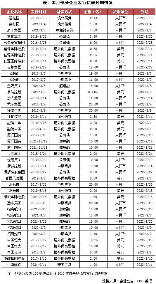 提前關(guān)注到2022年4月將有32筆債券到期,合計(jì)510.10億元,環(huán)比下降20.4%,償債壓力有所下降。單筆金額最高為中國(guó)恒大 2019年發(fā)行的12.5億美元境外優(yōu)先票據(jù)。
