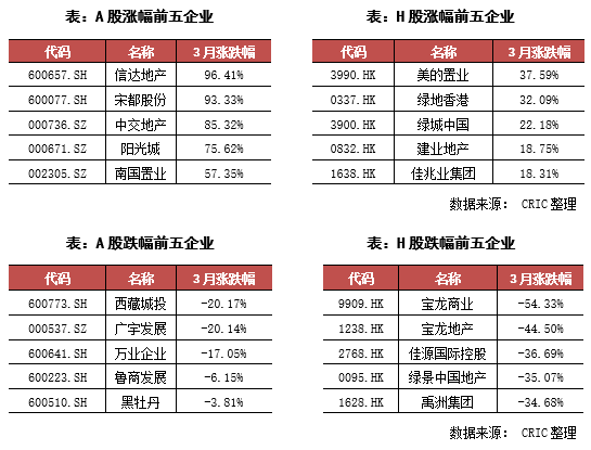04. 股價(jià)變動(dòng):A股近80%地產(chǎn)股整月上漲,H股地產(chǎn)股表現(xiàn)較為一般