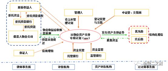 物業費ABS的交易結構有3中類型,最常見的是物業合同債權直接轉讓和基于物業費質押擔保貸款債權轉讓兩種模式;