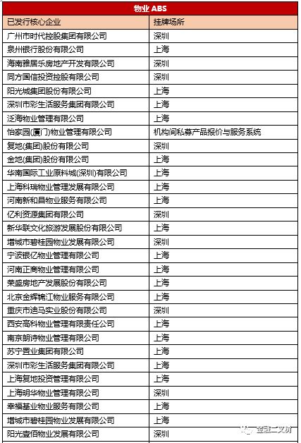3、已發行物業ABS核心企業