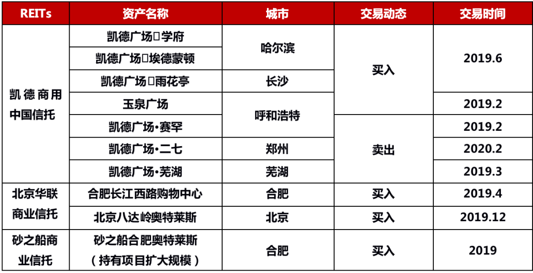 購物中心REITs近兩年資產(chǎn)買賣情況