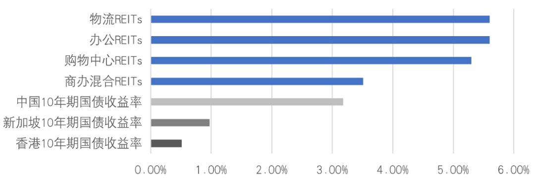 對于投資者來說,相較于投資國債等固定收益產(chǎn)品獲得的收益,REITs不失為一種選擇,除去REITs漲跌帶來的交易收益,持有REITs獲得的分派收益仍遠(yuǎn)高于投資本地十年期國債獲得的收益。