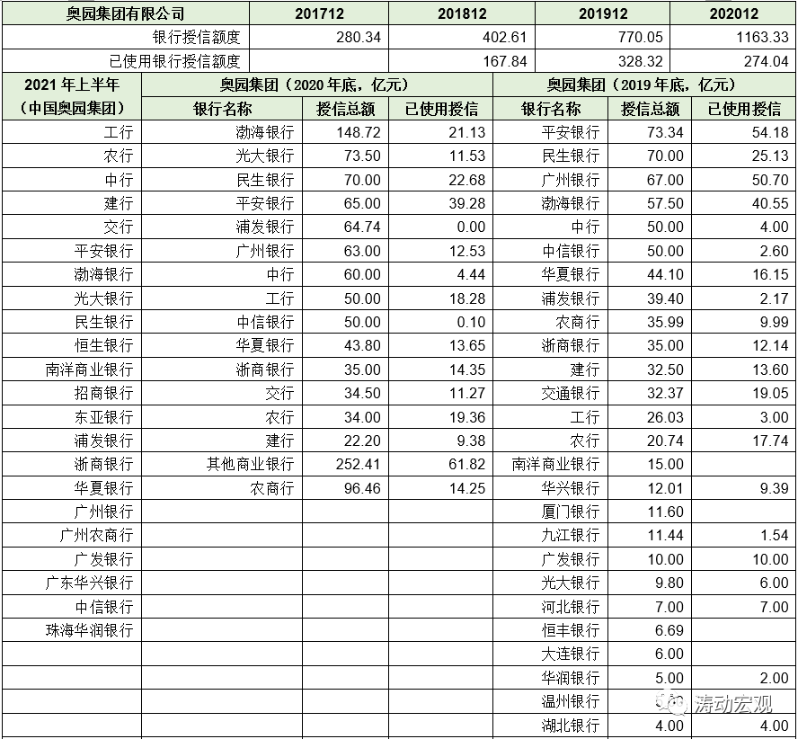 2、2020年以前奧園集團(tuán)基本上會(huì)披露其往來(lái)銀行的授信額度和具體提用情況,不過(guò)2020年以來(lái)奧園披露的信息逐漸簡(jiǎn)化,2020年未披露具體銀行的數(shù)量大幅減少,今年上半年則直接不披露授信金額、只披露往來(lái)銀行名稱。