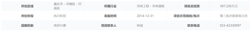 根據《PPP合同》約定:巴南區龍洲灣隧道項目合作期為24年(包括建設期4年和運營期20年),合作模式為重慶茂和基礎設施建設有限公司負責本項目的投融資、設計、建設、運營、維護、移交,由巴南區住建委按照《PPP合同》約定標準支付影子通行費。