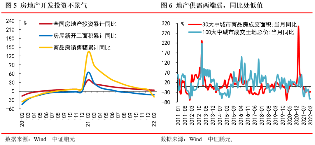 2月,信貸居民中長期貸款當月值歷史首次減少,反映居民信貸弱。30大中城市商品房成交面積當月同比增長為-27.30%, 100大中城市土地成交總價當月同比增長為-62.93%,商品房市場和土地市場均處低谷。當前居民信貸需求和意愿明顯不足,房地產低迷。保障性租賃住房被寄予厚望,居地產行業政策支持首位。