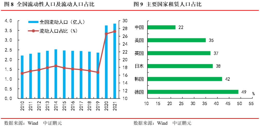 中國目前租賃人口占比僅為22%左右,低于發達國家,美國租賃人口占比約為35%,德國租賃人口占比接近50%。