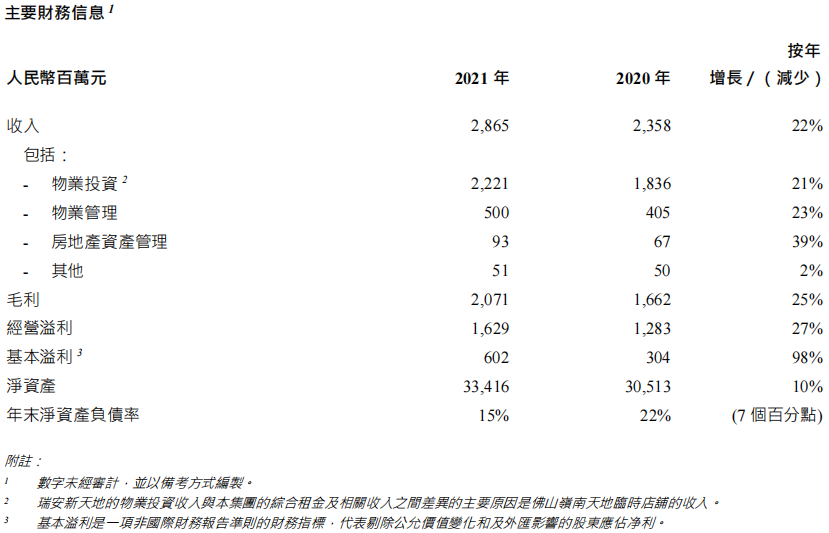 報告期間內,該集團的租金及相關收入增加21%至人民幣22.21億元。