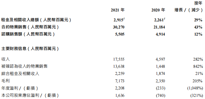 報告期內,該集團收入為人民幣175.55億元,較去年增長282%,主要由于物業銷售大幅增長。連同商業物業組合的強勢復蘇,集團轉虧為盈。股東應占溢利總額為人民幣16.36億元。