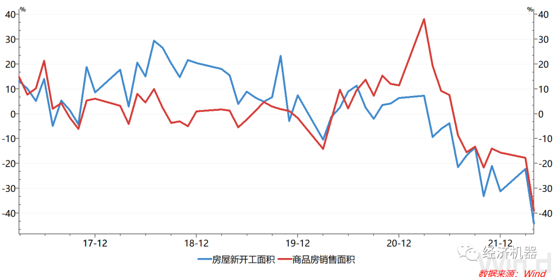 4)房地產(chǎn)下滑趨勢并沒有緩解。4月,新開工面積同比下滑44.19%,增速較上月回落約22個百分點;銷售面積當月同比下跌39%,增速較上月下滑約21個百分點,跌幅均創(chuàng)下有數(shù)據(jù)以來歷史新低。而據(jù)TOP100房企單月銷售數(shù)據(jù)顯示,同比降幅接近6成,下滑更為顯著。