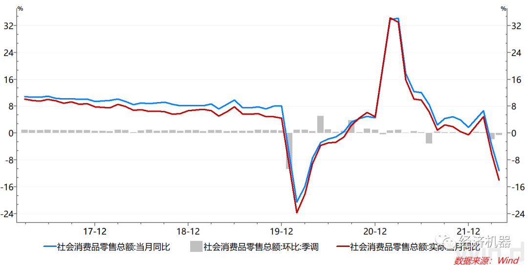 圖6:社會消費品零售總額:名義同比、實際同比和季調(diào)環(huán)比