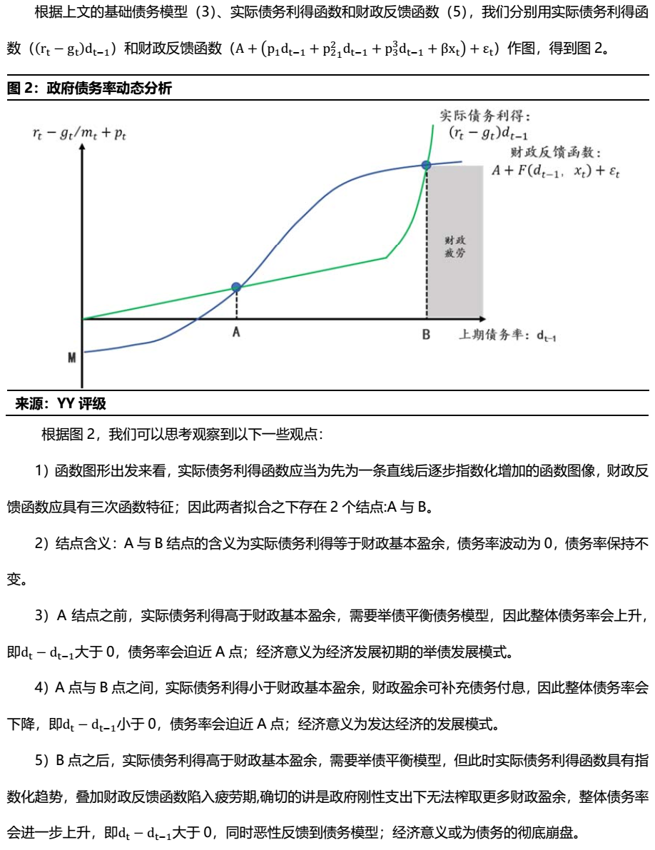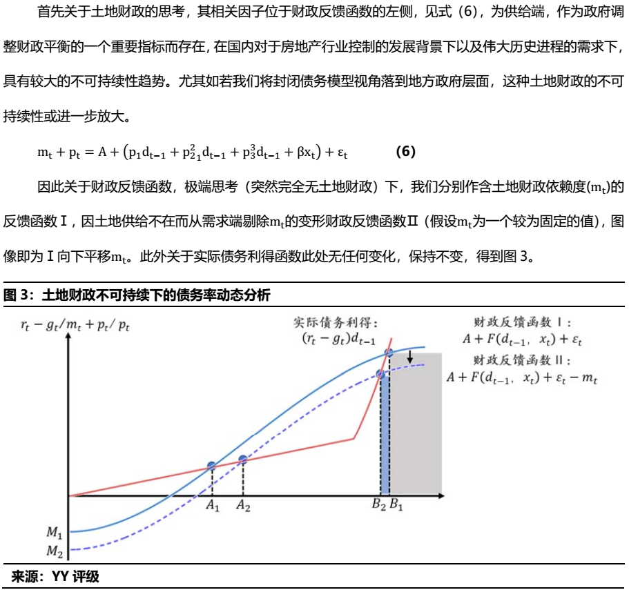 具體來看,我們從財政平衡模型出發,構造出實際債務利得函數和財政反饋函數,兩者動態變化下推演債務率的一個動態變化過程,點出城投和債務“明斯基時刻”存在的必然性和具體情形。