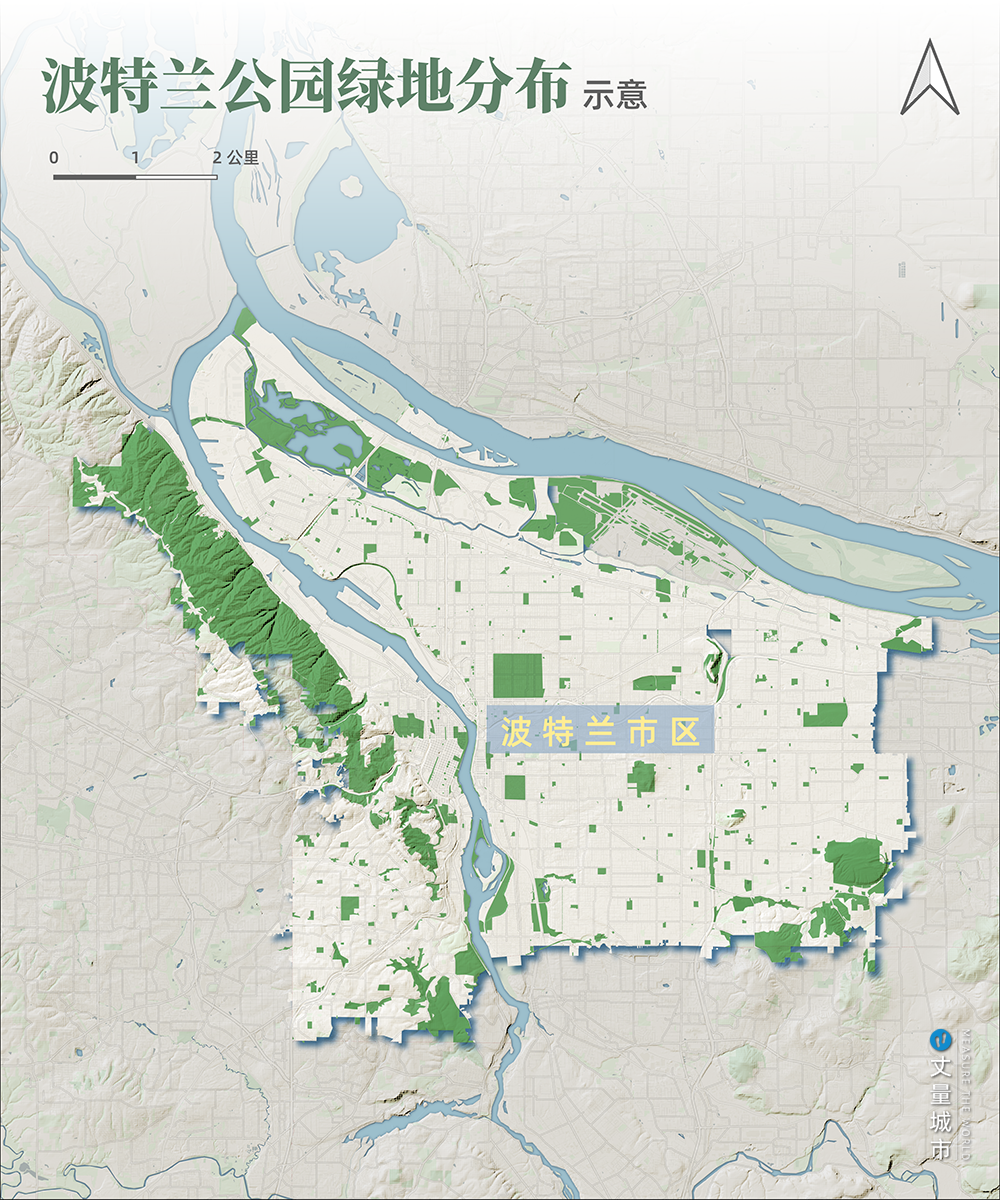 正如前文所述,城市西部的波特蘭森林公園和華盛頓公園是這種地理資源最為集中的體現。占地面積超過2,064公頃,全美最大的城市森林保護區之一的波特蘭森林公園,擁有極佳的生態資源。
