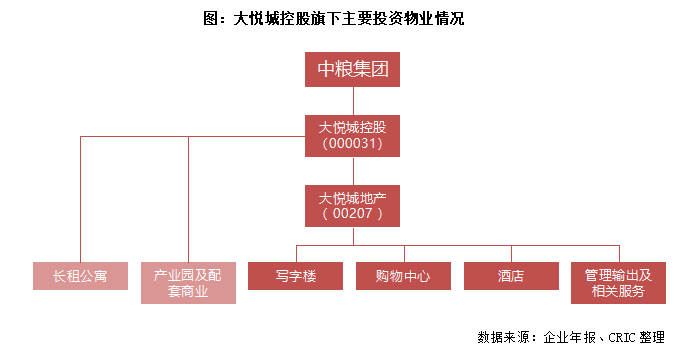 大悅城控股(000031.SZ)是中糧集團旗下唯一的地產(chǎn)投資和管理平臺,旗下的投資物業(yè)類型,主要包括購物中心、寫字樓、酒店、長租公寓、產(chǎn)業(yè)園及工業(yè)園等,其中購物中心(尤其是大悅城商場)、寫字樓、酒店主要歸屬于大悅城地產(chǎn)(0207.HK)旗下。下文中,將從大悅城商業(yè)的發(fā)展歷程、商業(yè)規(guī)模、運營管理等多方面進行分析。