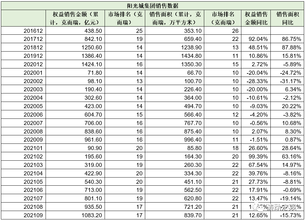 1、從銷售金額與銷售面積來看,陽光城集團目前在全國地產(chǎn)企業(yè)中排名20位左右。具體看,今年前9個月的權益銷售金額和銷售面積分別為1083.20億元(排名全國第17位)和839.70萬平方米(排名全國第21位)。