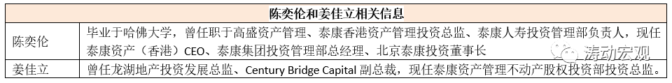 (1)泰康系需向陽光城集團派駐兩名董事,后者董事總數(shù)調整為12人。陳奕倫(泰康人壽董事長陳東升之子)和姜佳立(泰康資產(chǎn)管理不動產(chǎn)股權投資部投資總監(jiān))正是泰康系派駐的兩名董事。