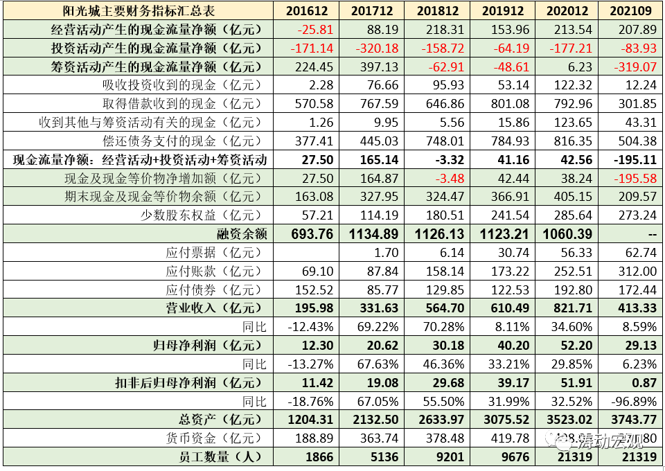 (2)我們看到,2020年陽光城集團的歸母凈利潤與扣非后的歸母凈利潤分別為52.20億元和51.91億元,達到了47.49億元的業(yè)績承諾。但是今年前三季度陽光城集團的歸母凈利潤與扣非后的歸母凈利潤分別為29.13億元和0.87億元,不僅歸母凈利潤與業(yè)績承諾相去甚遠,就連歸母凈利潤、扣非后歸母凈利潤兩個指標之間也呈現(xiàn)出分化較大的特征。這意味著陽光城集團今年的歸母凈利潤可能很難達到業(yè)績承諾要求,
