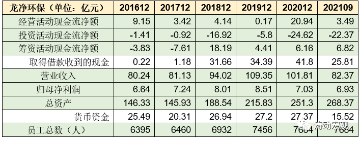 截至2021年9月,龍凈環(huán)保股份總資產(chǎn)達到268.37億元、實現(xiàn)營收82.37億元、歸母凈利潤6.93億元,擁有員工數(shù)量7684人。