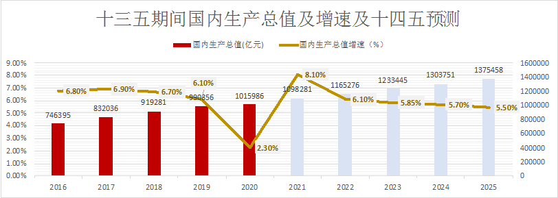 預(yù)計十四五末GDP增速放緩至5.2%-5.7%之間。