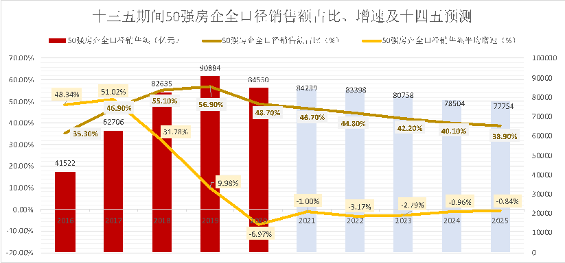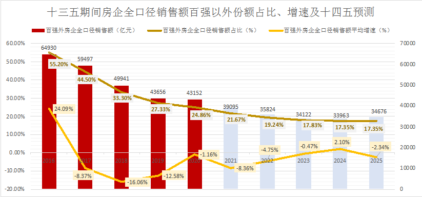 預(yù)估十四五期間百強外房企銷售額增速有望回正。