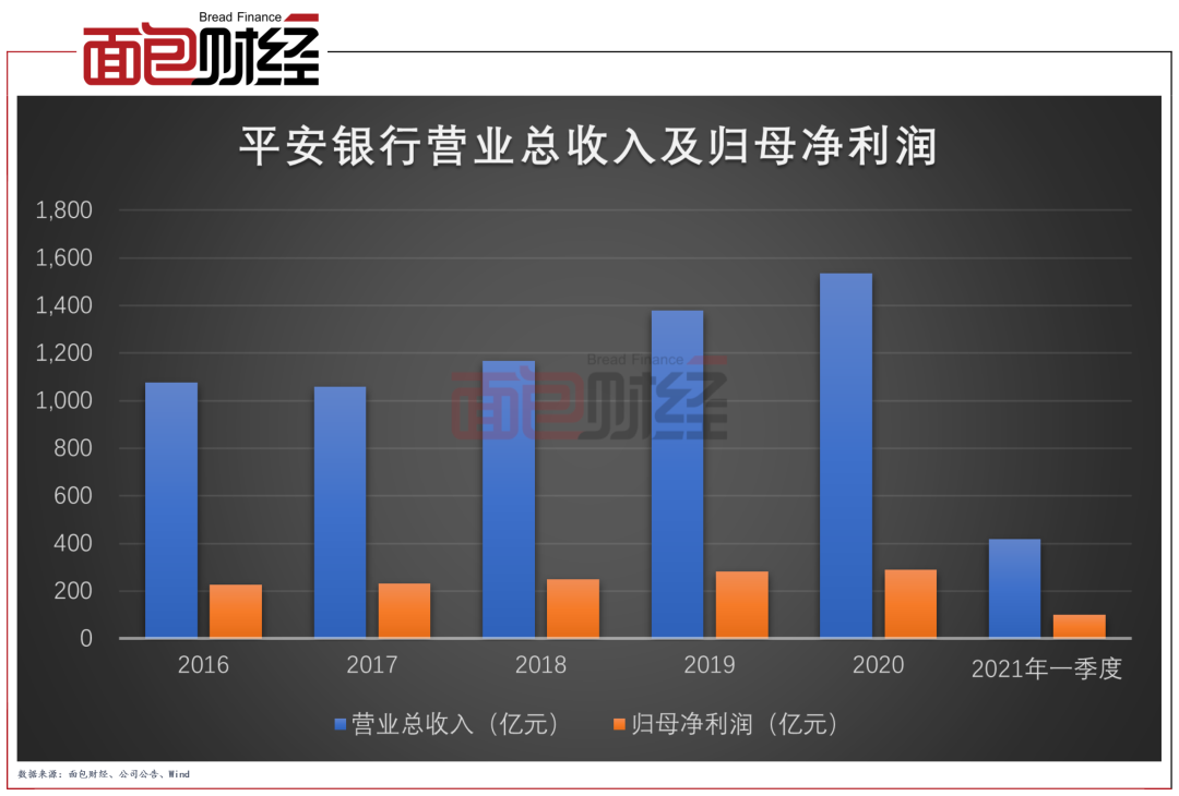 不僅是今年一季度,歷史財報顯示,平安銀行自2018年以來,都保持了較為穩定的增長。數據顯示,2020年該行實現營收1535.42億元,同比增長11.30%;實現歸母凈利潤289.28億元,同比增長2.6%。