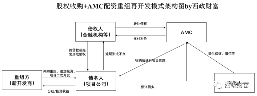 在項目股權結構清晰、項目易掌控的情況下,可考慮直接收購項目公司的股權,清退原股東,并與AMC合作進行重組再開發。