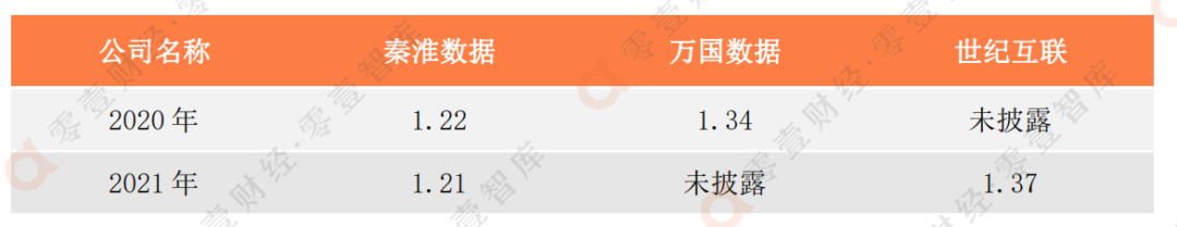 表2:秦淮數據、萬國數據和世紀互聯的平均PUE