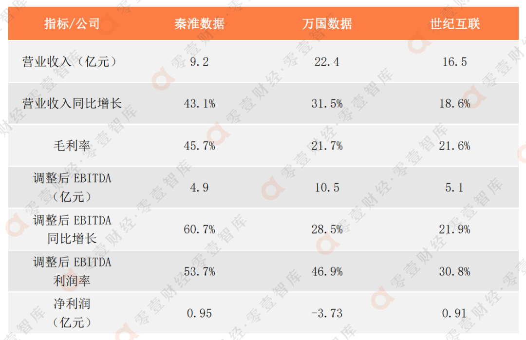 表1:2022年一季度秦淮數據、萬國數據和世紀互聯的業績對比