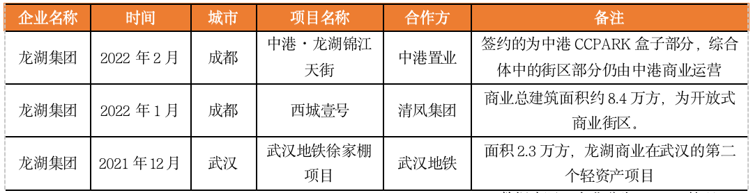 圖:龍湖近期簽約輕資產(chǎn)項(xiàng)目情況