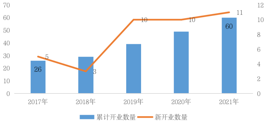 圖:龍湖2017-2021年購(gòu)物中心開(kāi)業(yè)情況
