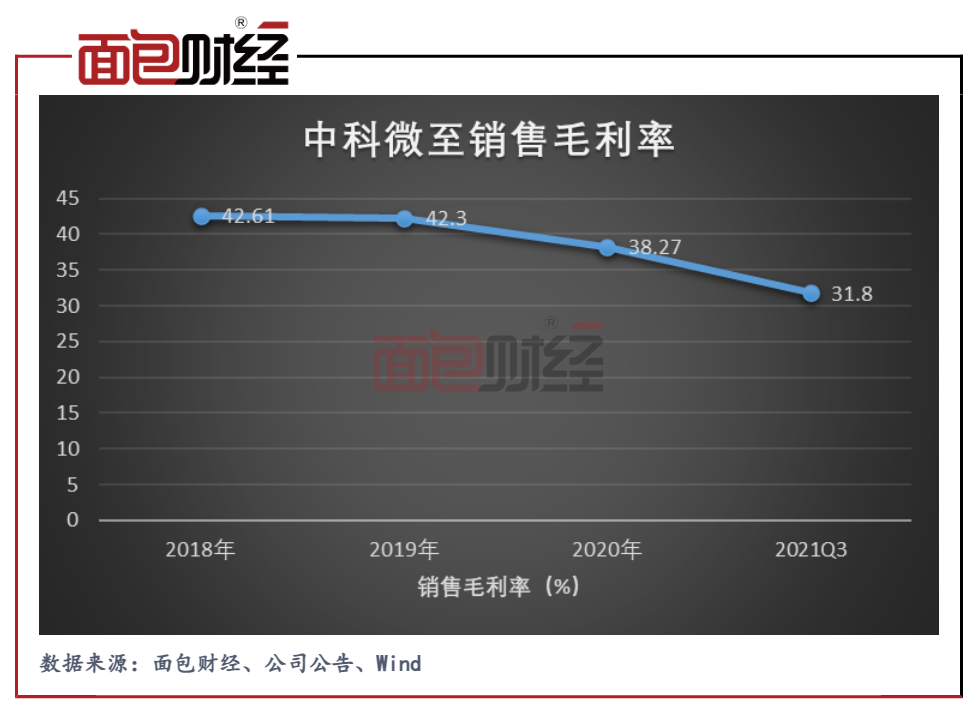圖7:2018年至2021Q3中科微至銷售毛利率
