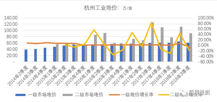 杭州工業(yè)土地一級出讓價格,自2014到2017年,年復(fù)合增長10.69%,而以司法拍賣為代表的二級成交價年增長30.88%。截止2017年底,一級出讓價為二級成交價的60%左右。