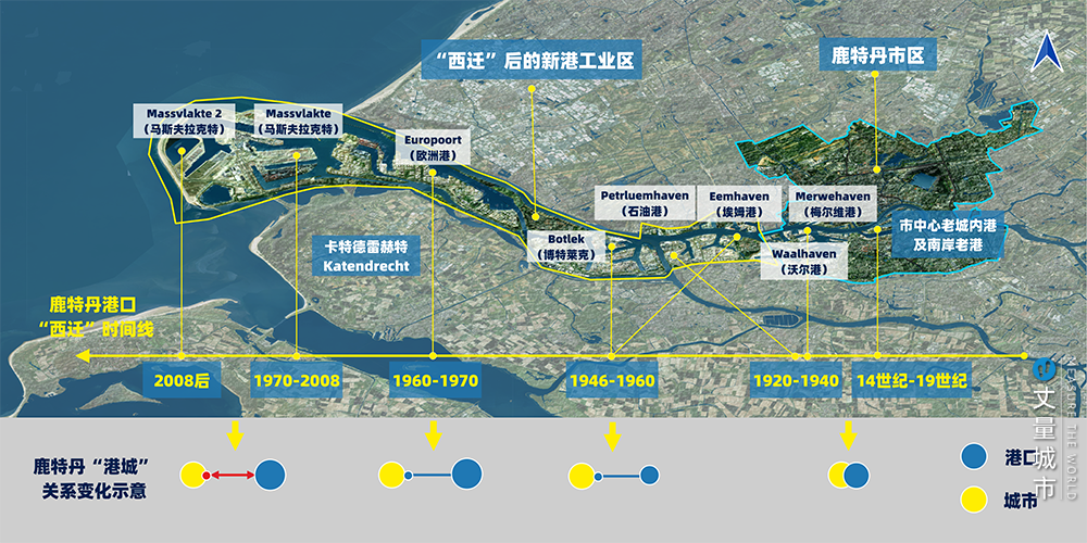 因此,港口和工業區逐步西遷離開老城,新港區由老城沿新水道向北海綿延40公里,其面積由二戰后26.3Km2逐步擴張至超過100Km2。