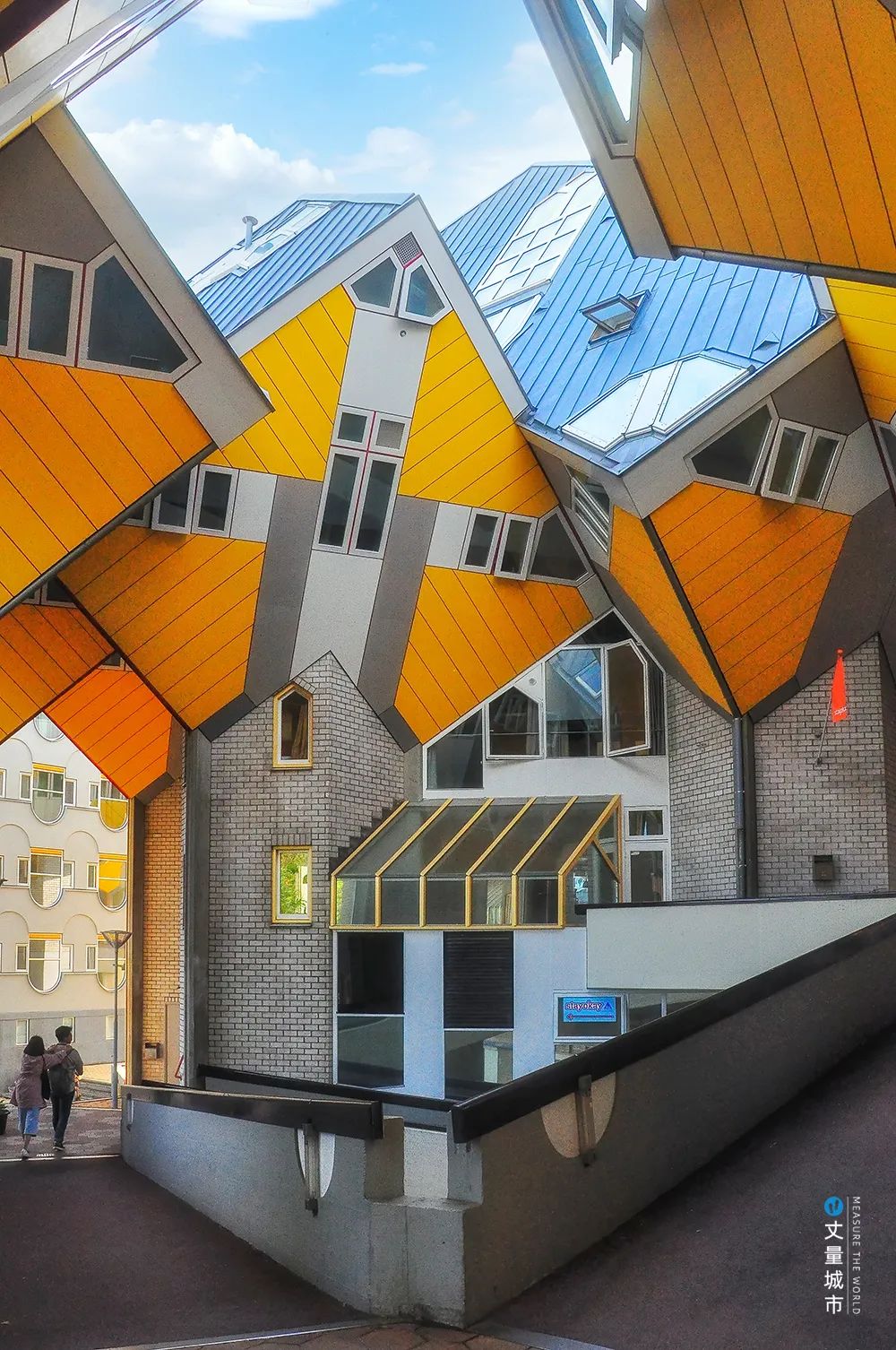 這些由多個45度立面組成的立體房屋綜合體,共同組成了抽象的「城市森林」,其中每個三角屋頂代表一個樹梢,造型奇異前位,是前來鹿特丹游客不容錯過的濱水打卡點。