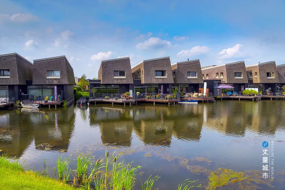 在鹿特丹東北部約6公頃的蘭斯蘭德住宅片區規劃了多類臨水住宅;區域將大面積水域和住宅建筑的進行巧妙融合,探索在水上或水岸居住的多種可能性。