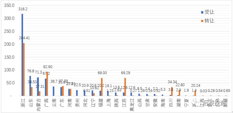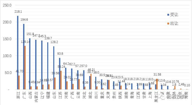 長城資產的分省受讓數據較為均衡,基本能與當地銀行業不良債權存量市場體量匹配,其中排在前五的浙江、江蘇、山東、河南、廣東共計占總受讓金額的43.1%;而在出讓端,山東、江蘇、廣東、浙江四省的規模遠大于其他地區,貢獻了總出讓的67.15%份額,充分體現了這四個地區二級市場的流動性優勢。