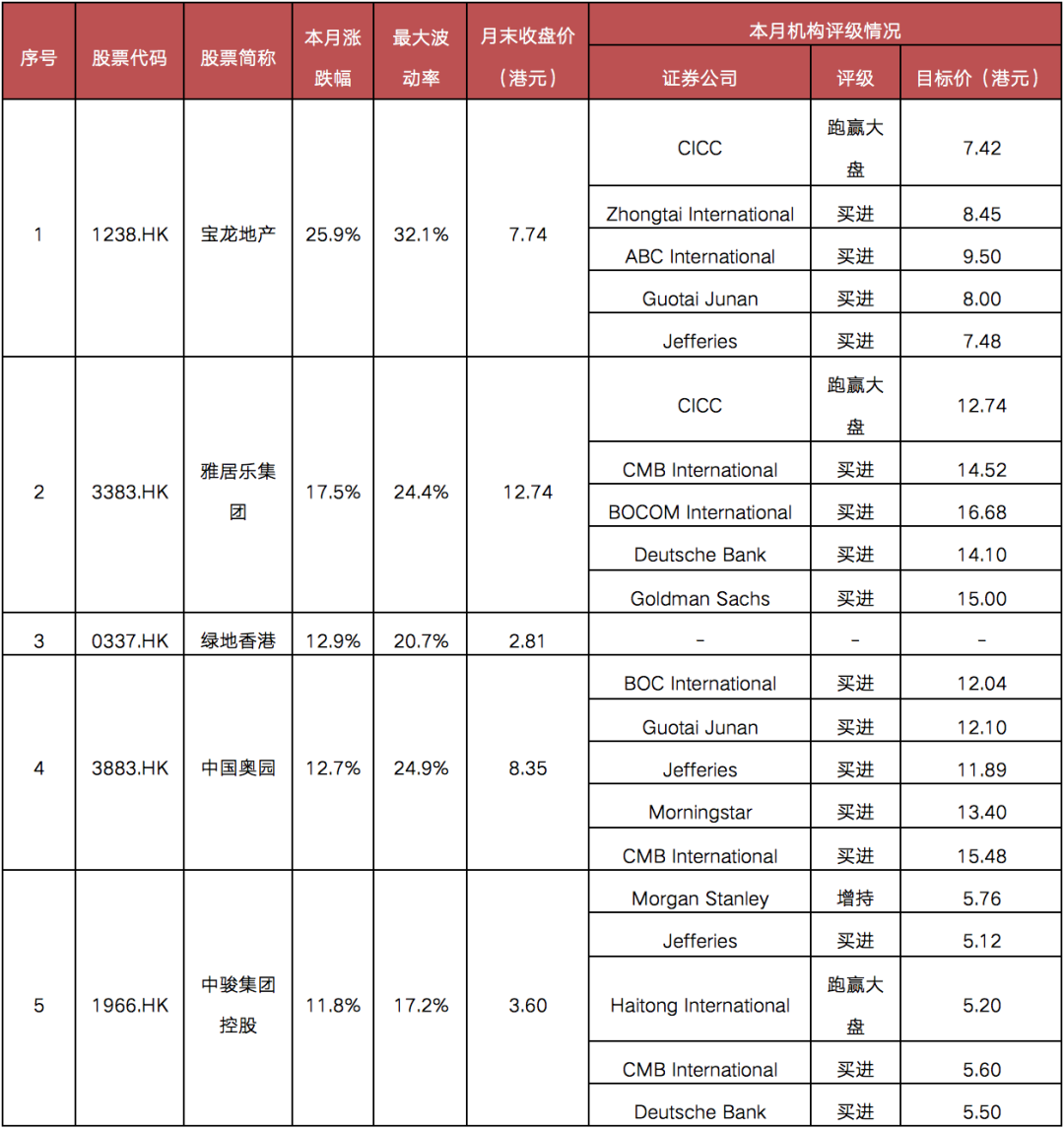 表:3月克而瑞內(nèi)房股領(lǐng)先指數(shù)成分股漲幅TOP5