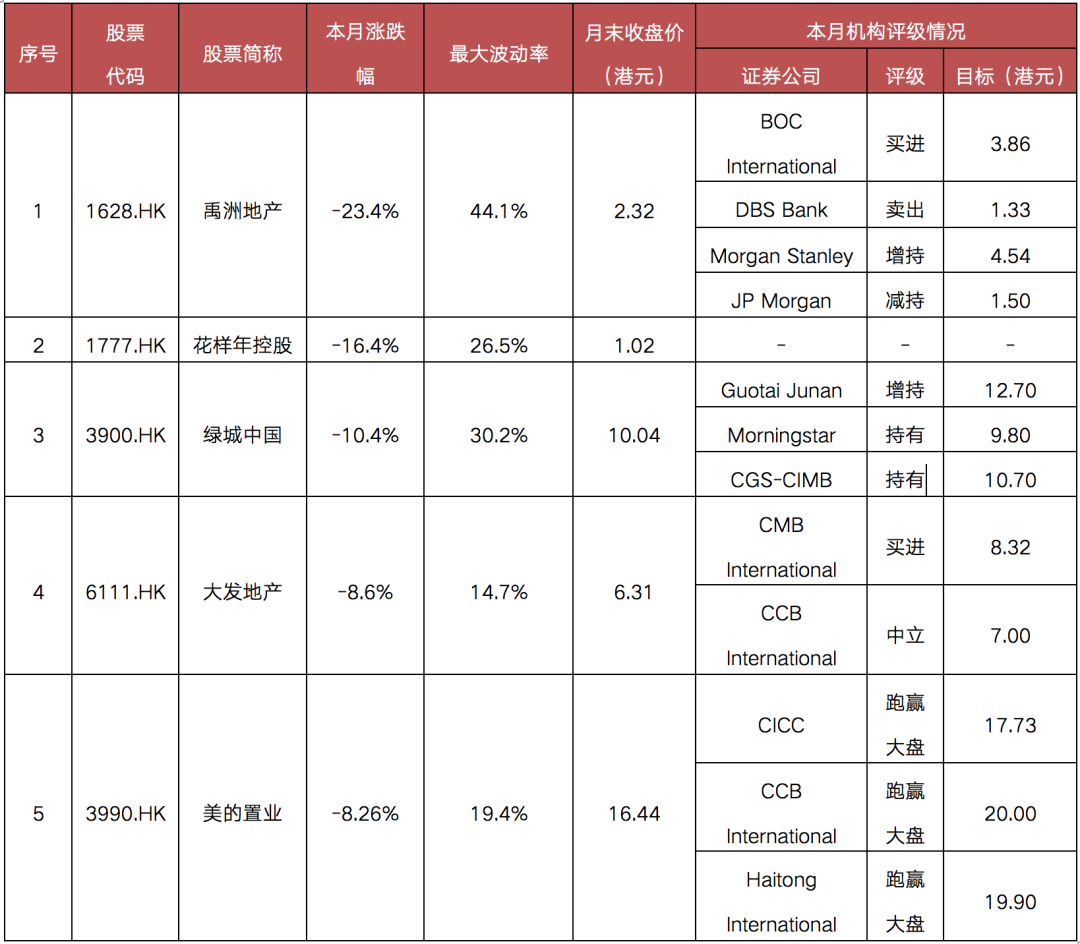 表:3月克而瑞內(nèi)房股領(lǐng)先指數(shù)成分股跌幅TOP5