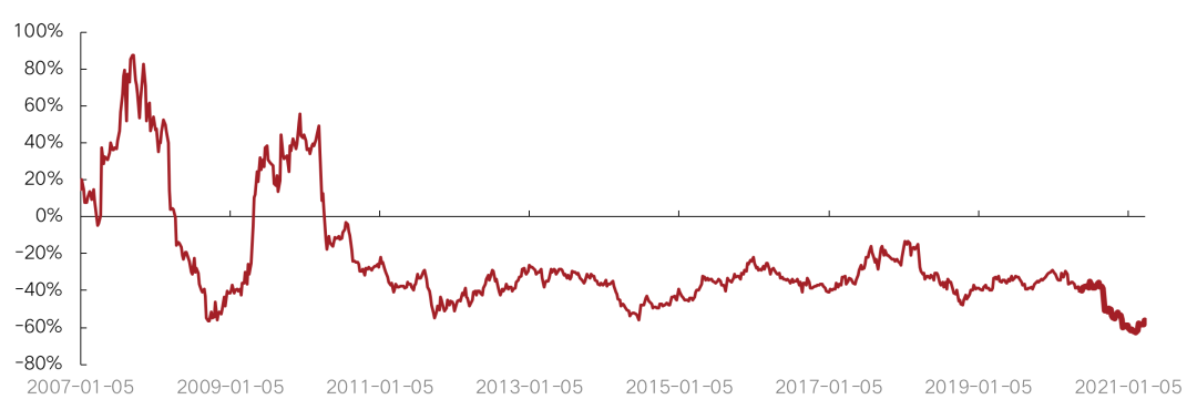 備注:相對PE=(克而瑞內(nèi)房股領(lǐng)先指數(shù)成分股整體PE/恒生指數(shù)成分股整體PE-1)*100%