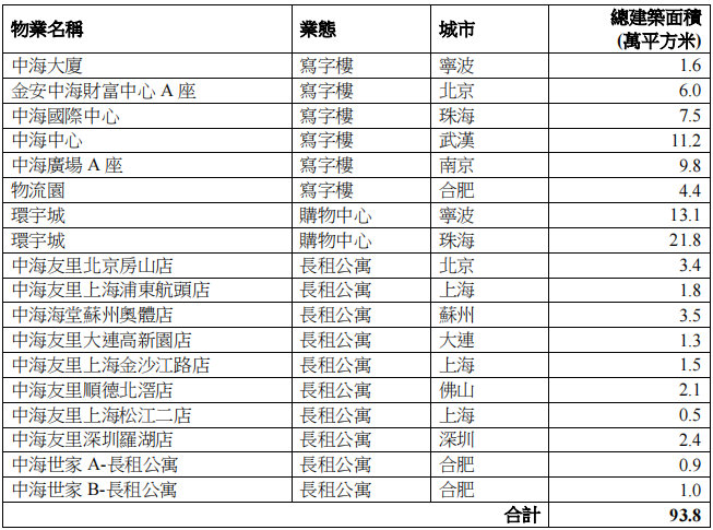 報告期間內,北京金安中海財富中心、珠海環宇城、寧波環宇城等18個商業物業投入運營,合計建筑面積94萬平方米,實現商業規模高質量有序增長。