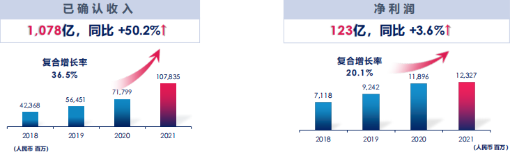 報告期間內,營業收入達到1002億元,同比增長52.4%;年內利潤76.87億元,較去年增長33.4%;核心凈利潤57.65億元,同比增長44.4%;每股盈利達到1.31億元,同比增長24.8%。